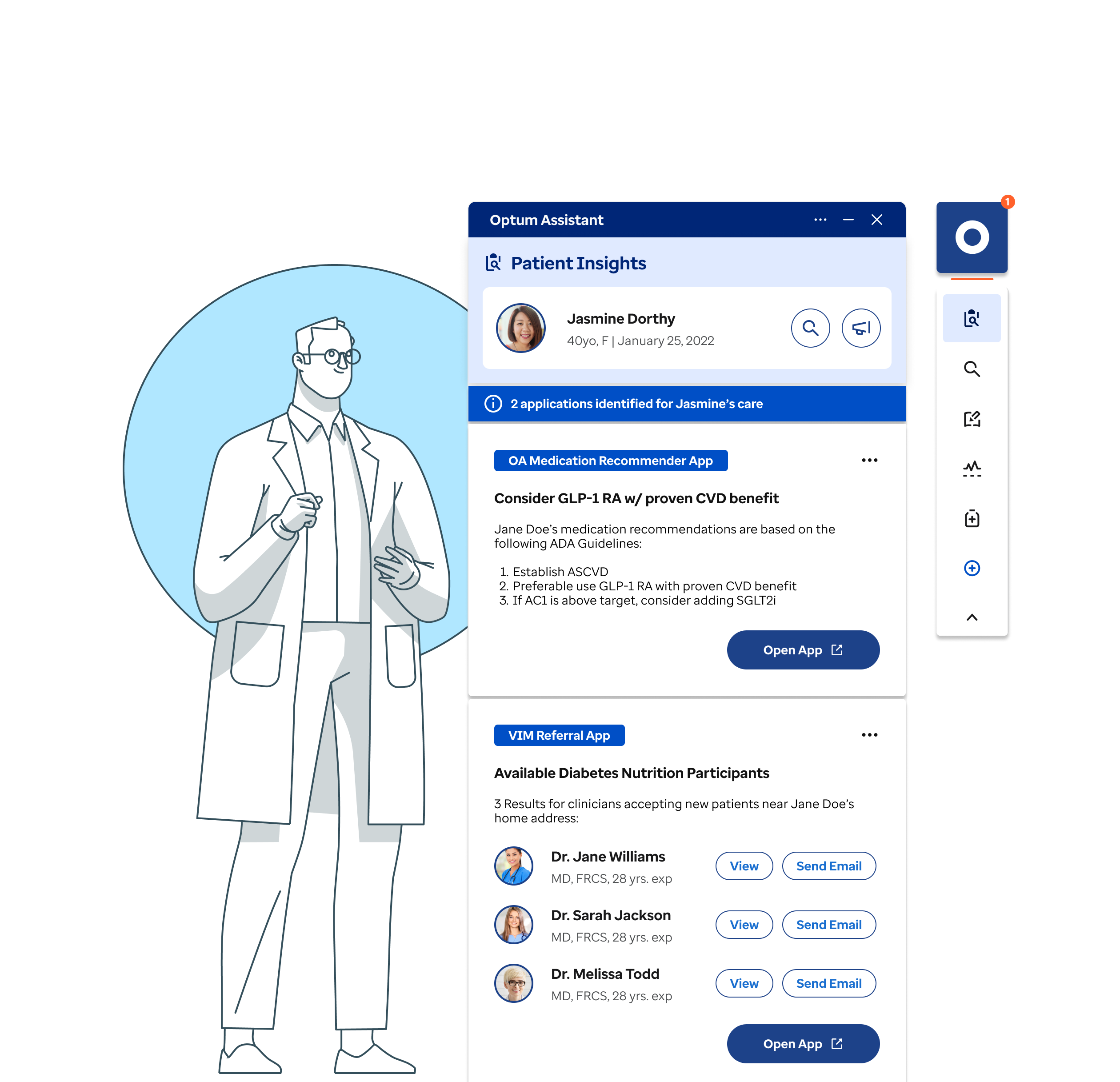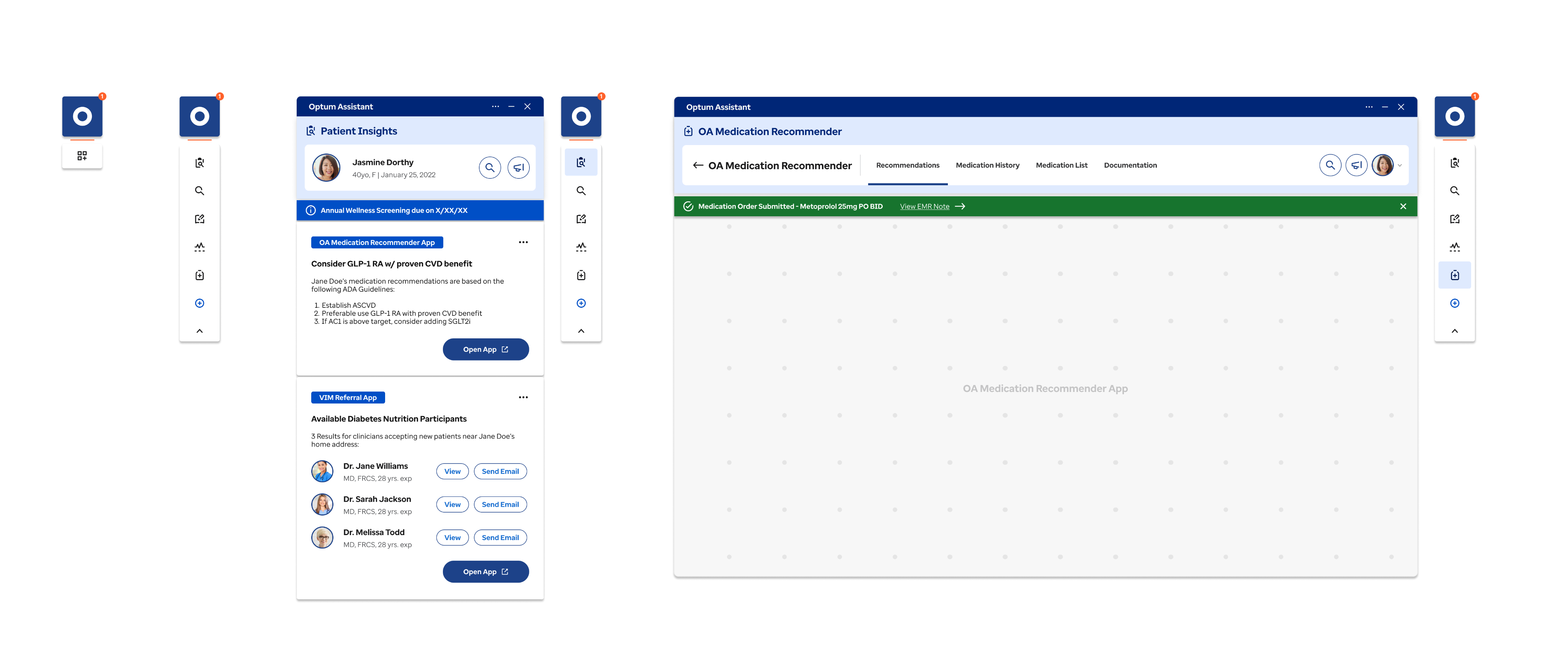 Optum developed an MVP decision-support tool for in-network clinicians, designed to deliver concise, guideline-based recommendations tailored to each patient’s conditions. However, the initial MVP largely mirrored the dense, cumbersome UI of existing EHR systems, adding complexity instead of reducing it. Our challenge was to transform this into a streamlined, context-aware experience that fits naturally into clinicians’ workflows.
