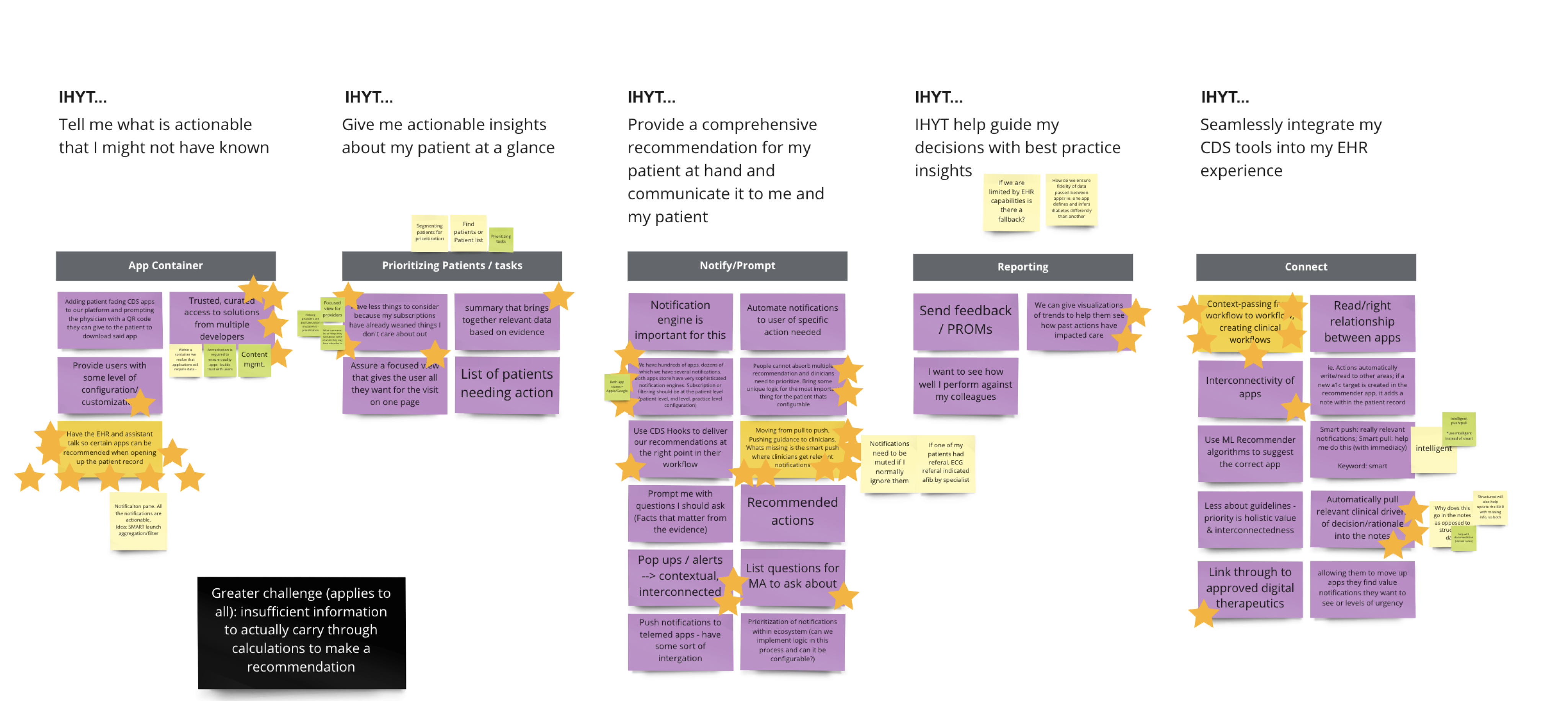 - Focus and prioritization posed a real risk. Without validated insights into clinician workflows and decision-making behaviors, the team risked overbuilding features or developing functionality that does not align with actual needs.